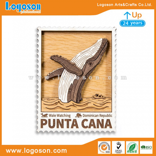 Custom 2-Layer MDF Fridge Magnet Wooden Whale Souvenir Punta Cana Travel Gifts