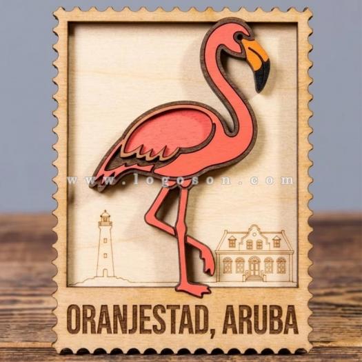 Perfect for gift shops, tourist attractions, marine parks, and souvenir retailers, this magnet stands out with its warm, eco-friendly wooden texture and artistic engraving style. The stamp-shaped frame adds a collectible feel, while the customized logo and location text enhance its branding value, making it ideal for destination-based merchandising.